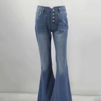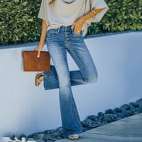 70-talet är tillbaka! Vår High Rise Flare Denim kommer i en medeltvätt komplett med hög resning. Designad med knappstängningar fram och 5 fickor. Dessa höga byxor är så smickrande i sin stretchiga stil.