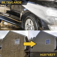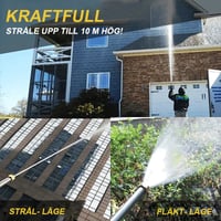 2-i-1 högtryckstvätt ansluts till alla vanliga trädgårdsslangar och utför kraftfull högtryckstvätt för att ta bort hårda fläckar, mögel, lera, smuts etc. utan att skrubba manuellt. Kan rengöra och återställa lyster på alla ytor inklusive trä, tegel, betong, sidospår, plast, glas och mer.